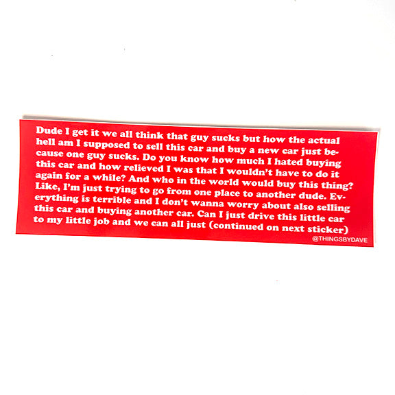This is what goes through my head every time I pull up behind one of those cars with a sticker apologizing for it being that car.